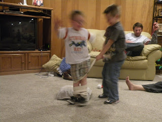 tying eachother up and pulling eachother over.