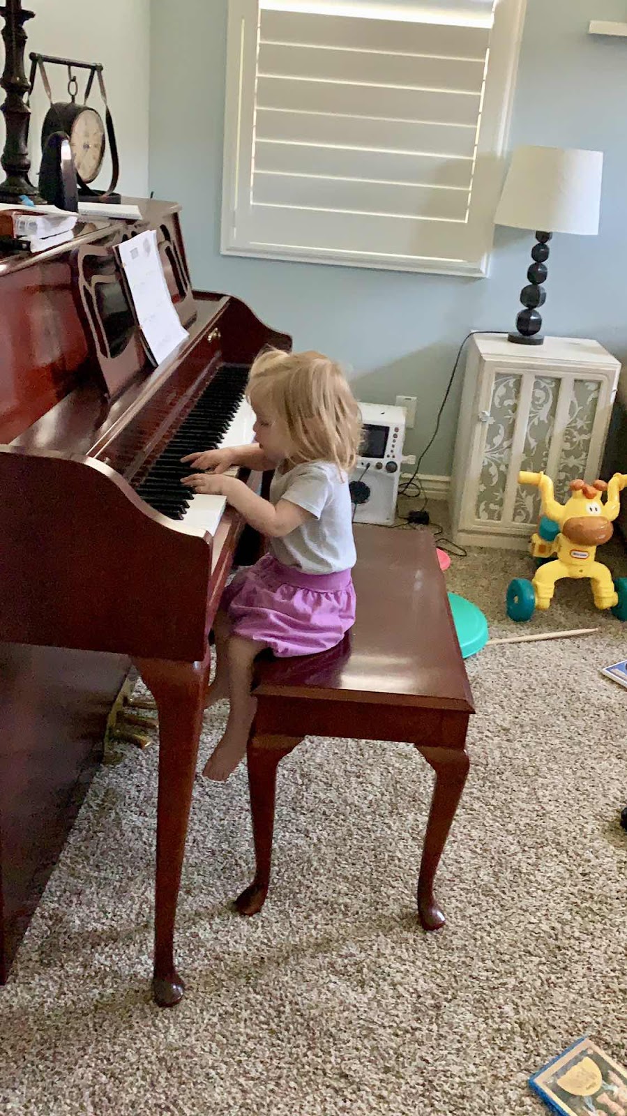 Brinna loves pounding away at the piano, too.